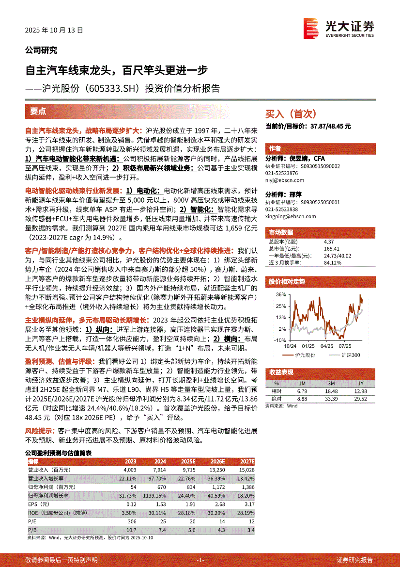 沪光股份:光大证券-沪光股份-605333-投资价值分析报告:自主汽车线束龙头,百尺竿头更进一步-251013