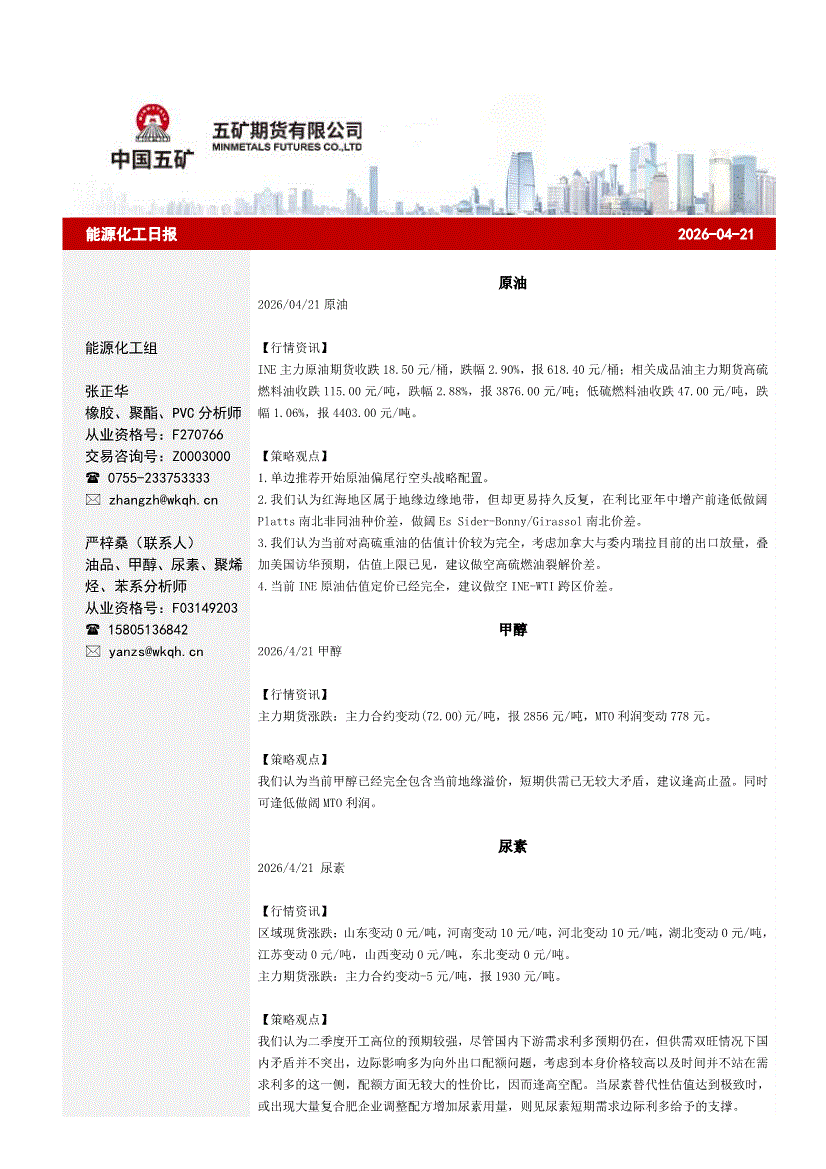 五矿期货-能源化工日报-260421