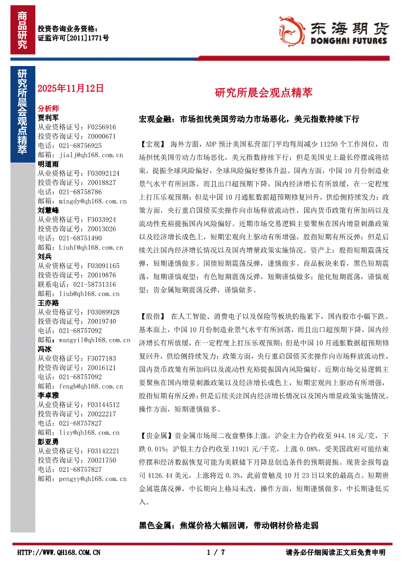 东海期货-宏观数据观察:10月经济增速继续放缓且低于预期-251114