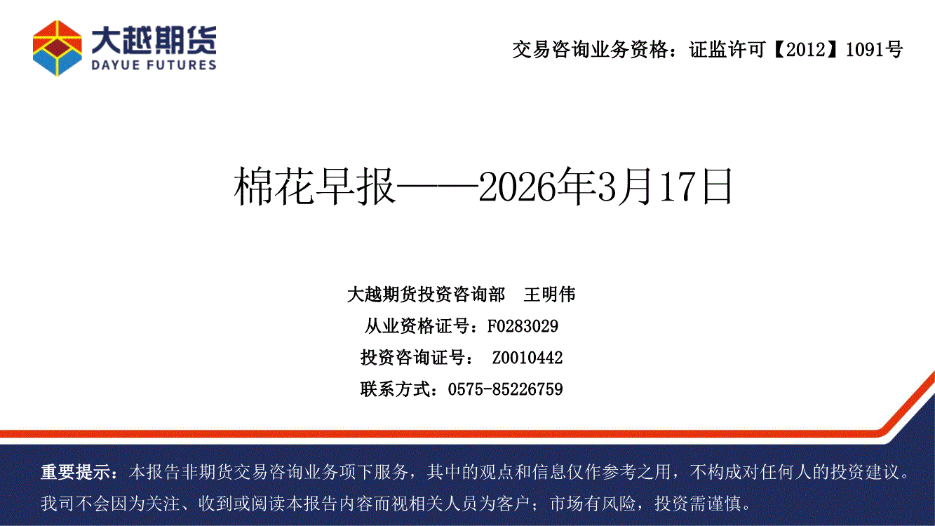 大越期货-棉花早报-260317