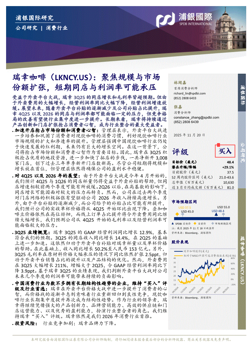 瑞幸咖啡:浦银国际-瑞幸咖啡-LKNCY.US-聚焦规模与市场份额扩张,短期同店与利润率可能承压-251120