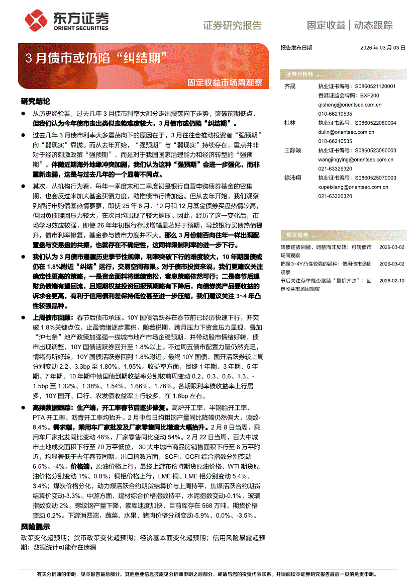 东方证券-固定收益市场周观察:3月债市或仍陷“纠结期”-260303