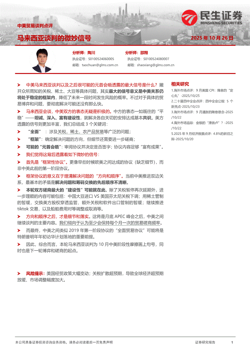 民生证券-中美贸易谈判点评:马来西亚谈判的微妙信号-251026