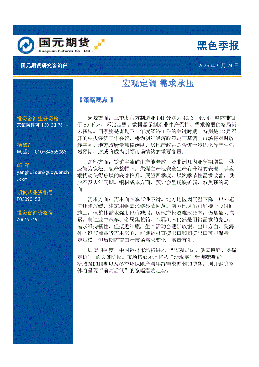 国元期货-黑色季报:宏观定调,需求承压-250924