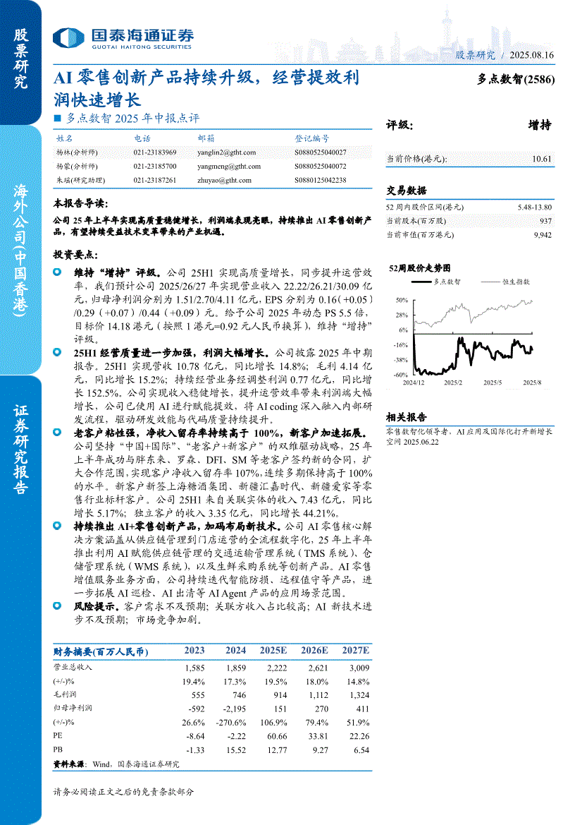 多点数智:国泰海通证券-多点数智-2586.HK-2025年中报点评:AI零售创新产品持续升级,经营提效利润快速增长-250816