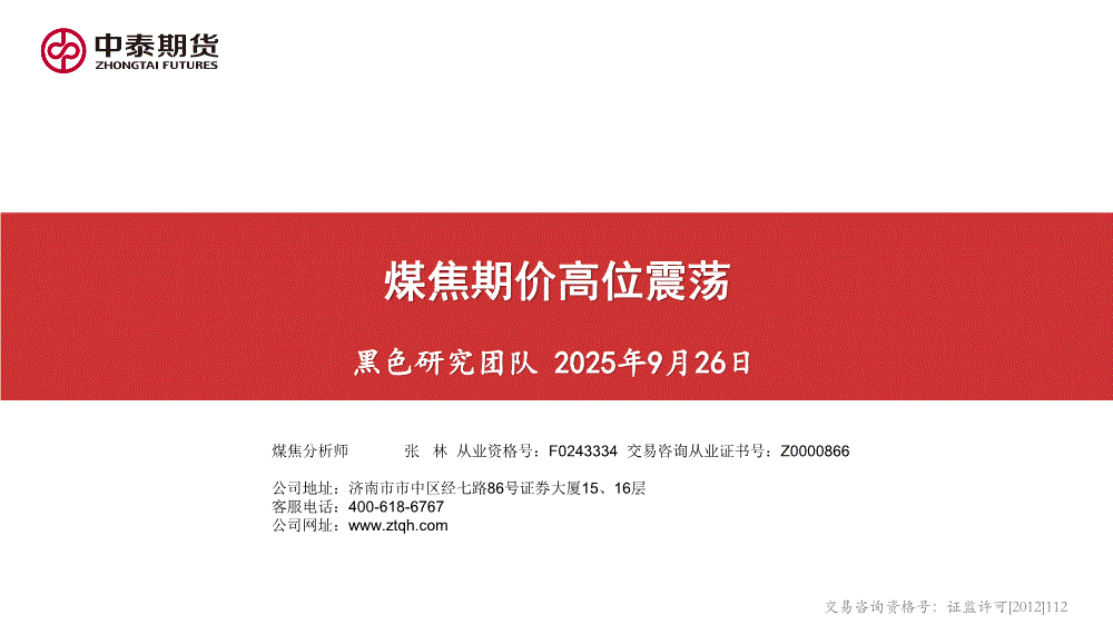 中泰期货-煤焦期价高位震荡,焦炭开启第六轮提涨-250808
