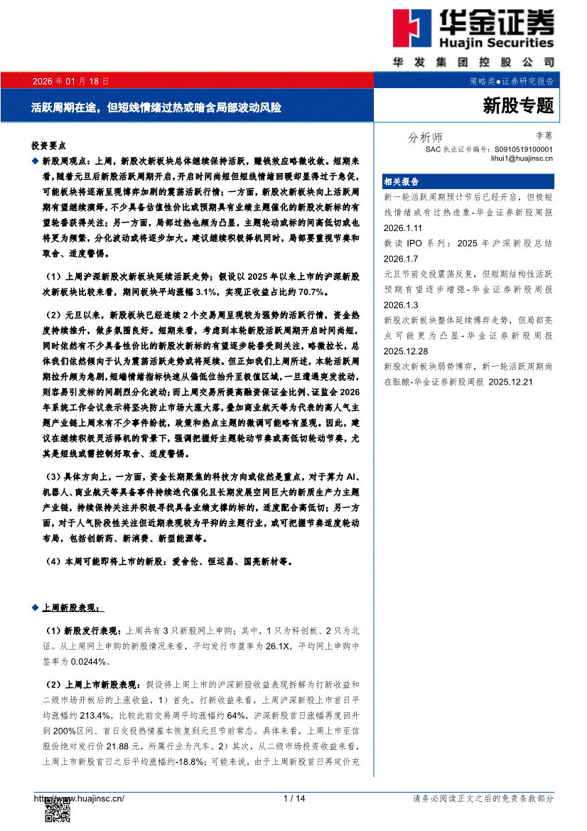 华金证券-新股专题:活跃周期在途,但短线情绪过热或暗含局部波动风险-260118