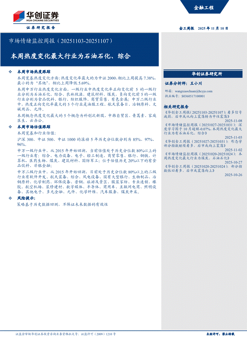 华创证券-市场情绪监控周报:本周热度变化最大行业为石油石化、综合-251110