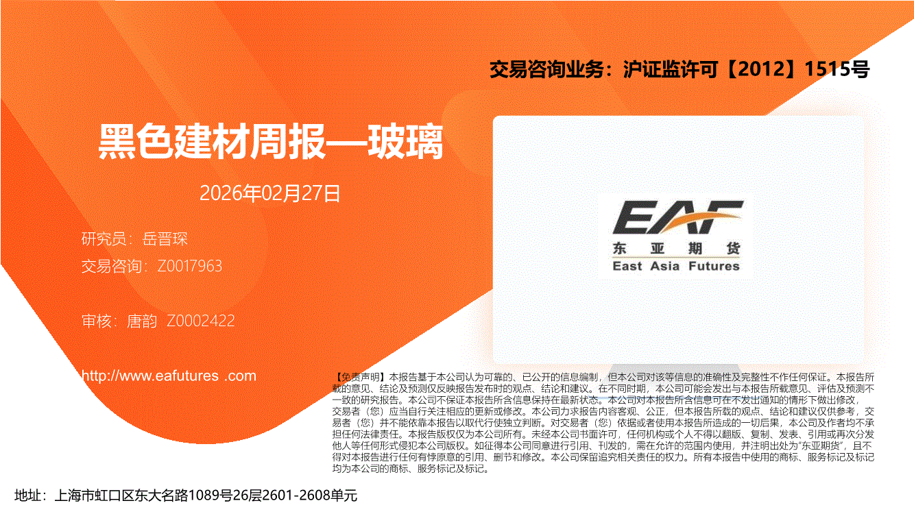 上海东亚期货-黑色建材周报—玻璃-260227