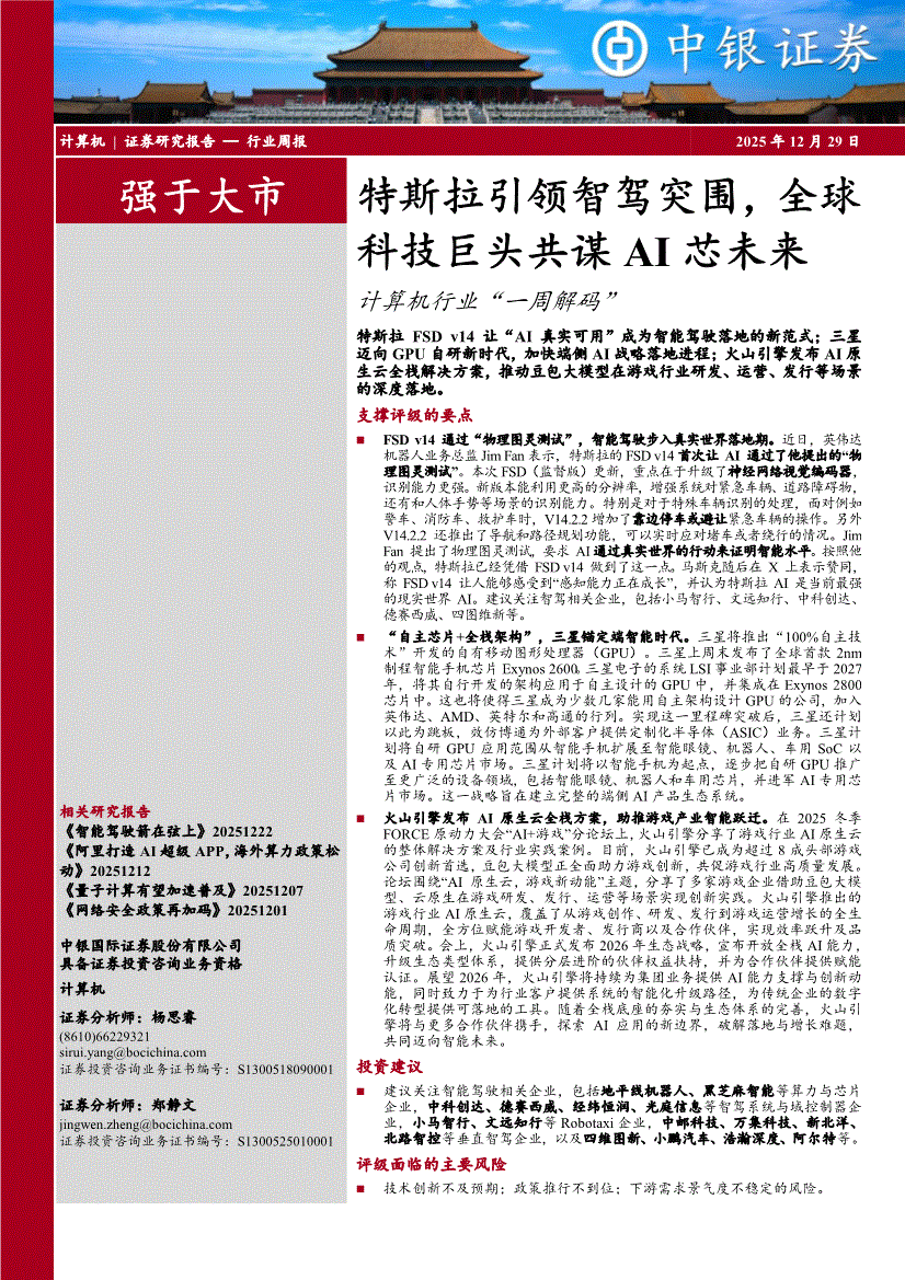 计算机行业:中银国际-计算机行业“一周解码”:特斯拉引领智驾突围,全球科技巨头共谋AI芯未来-251229
