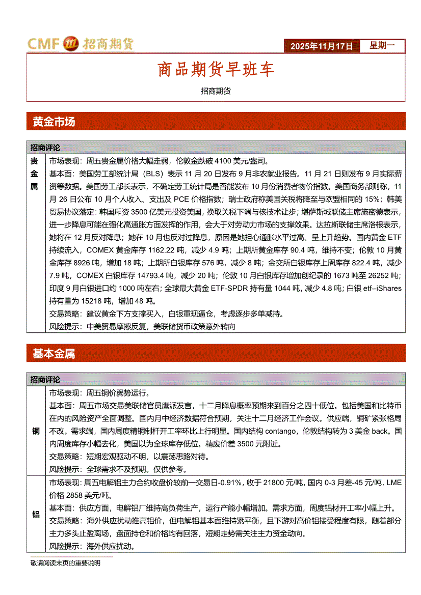 招商期货-大类资产配置周报:10月国内货币信贷增速有所放缓-251116