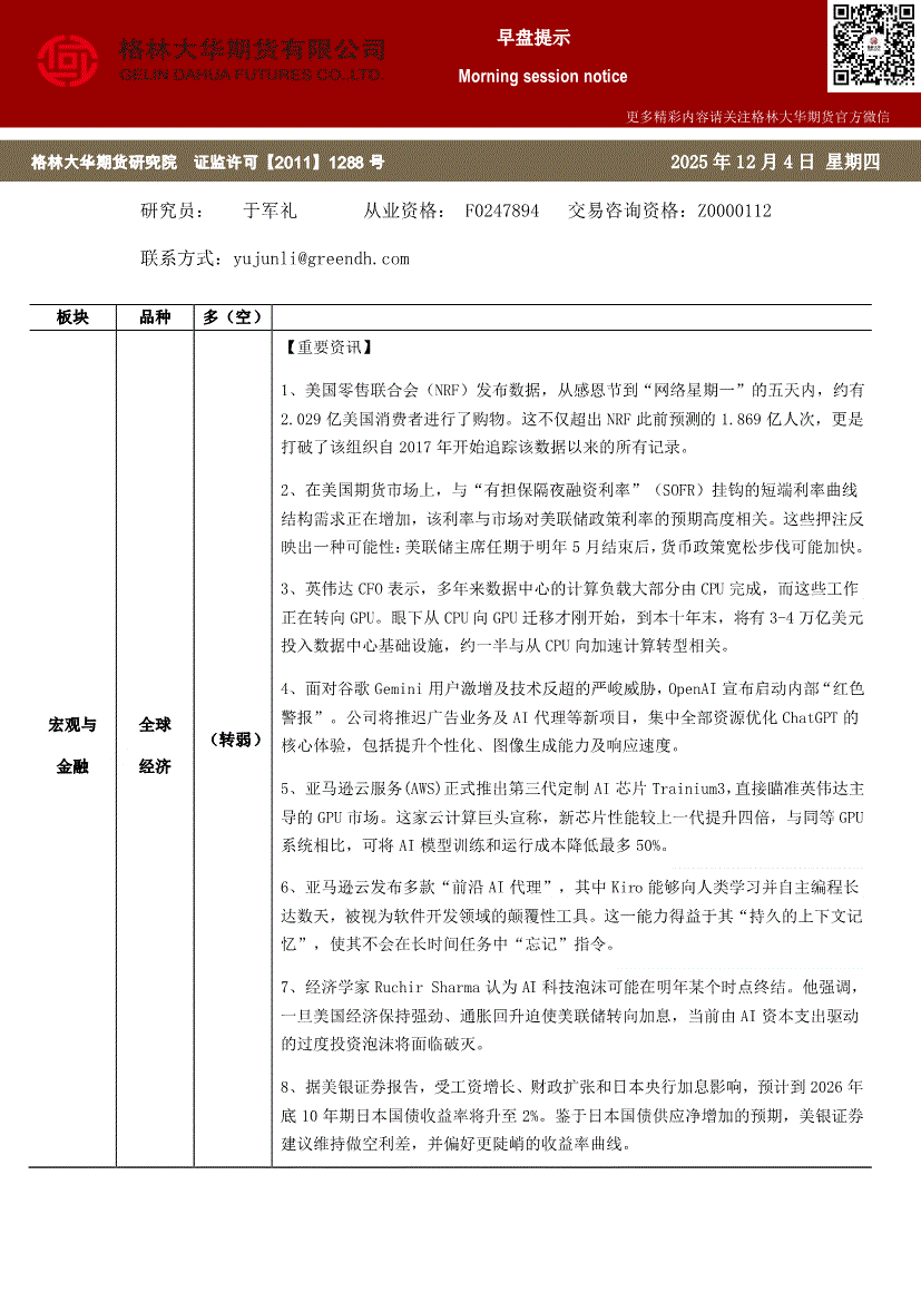 格林大华期货-早盘提示:宏观与金融-251208