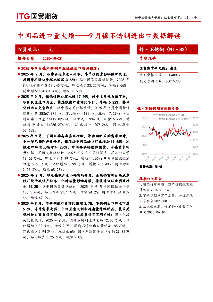 国贸期货-镍·不锈钢专题报告:中间品进口量大增——9月镍不锈钢进出口数据解读-251028