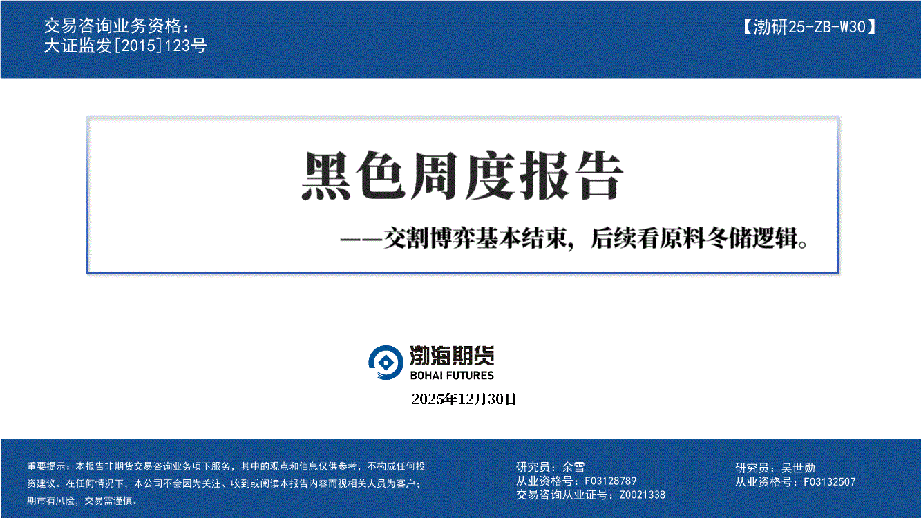 渤海期货-黑色周度报告:交割博弈基本结束,后续看原料冬储逻辑-251230