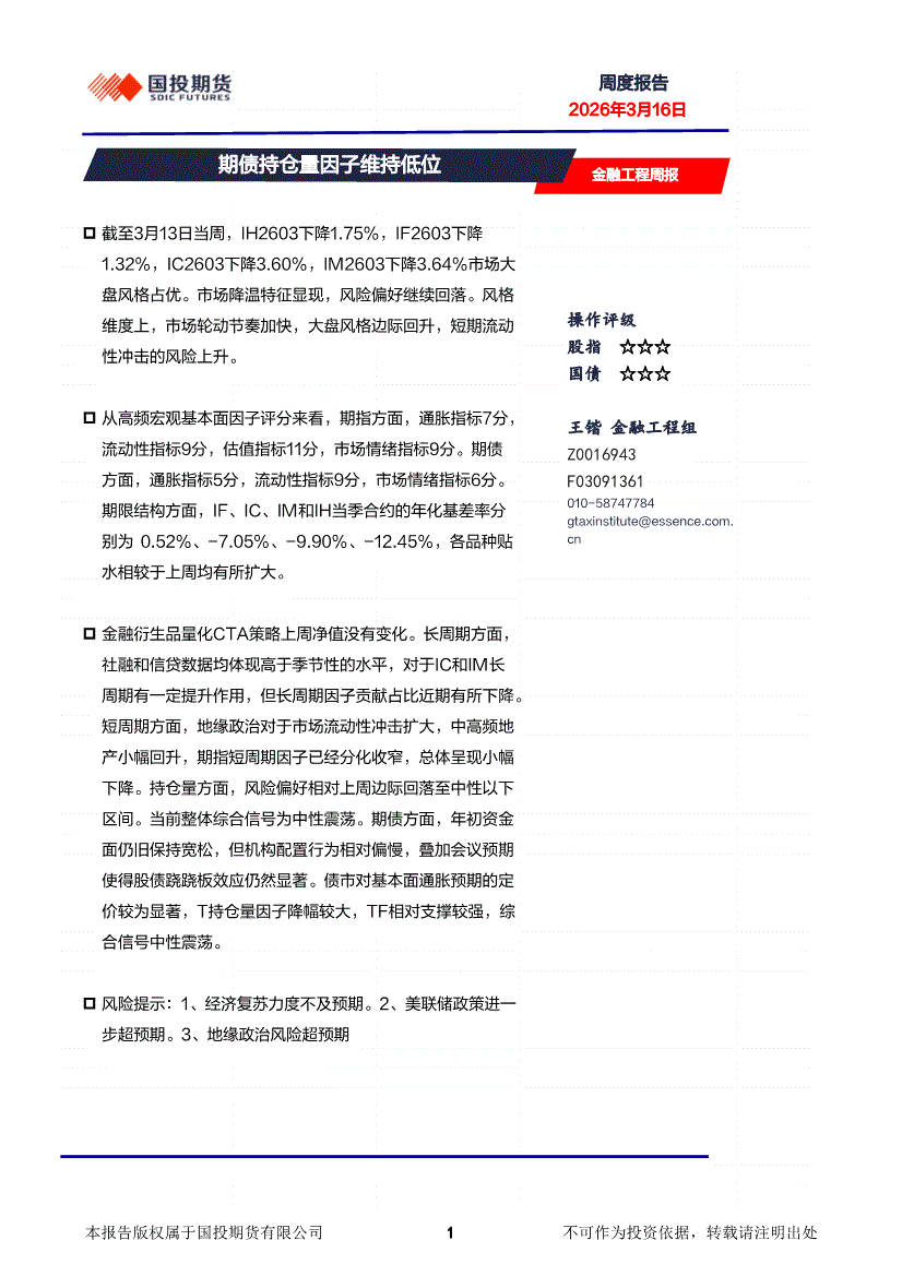 国投期货-金融工程周报:期债持仓量因子维持低位-260316