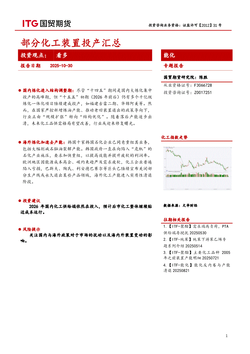 国贸期货-能化专题报告:部分化工装置投产汇总-251030