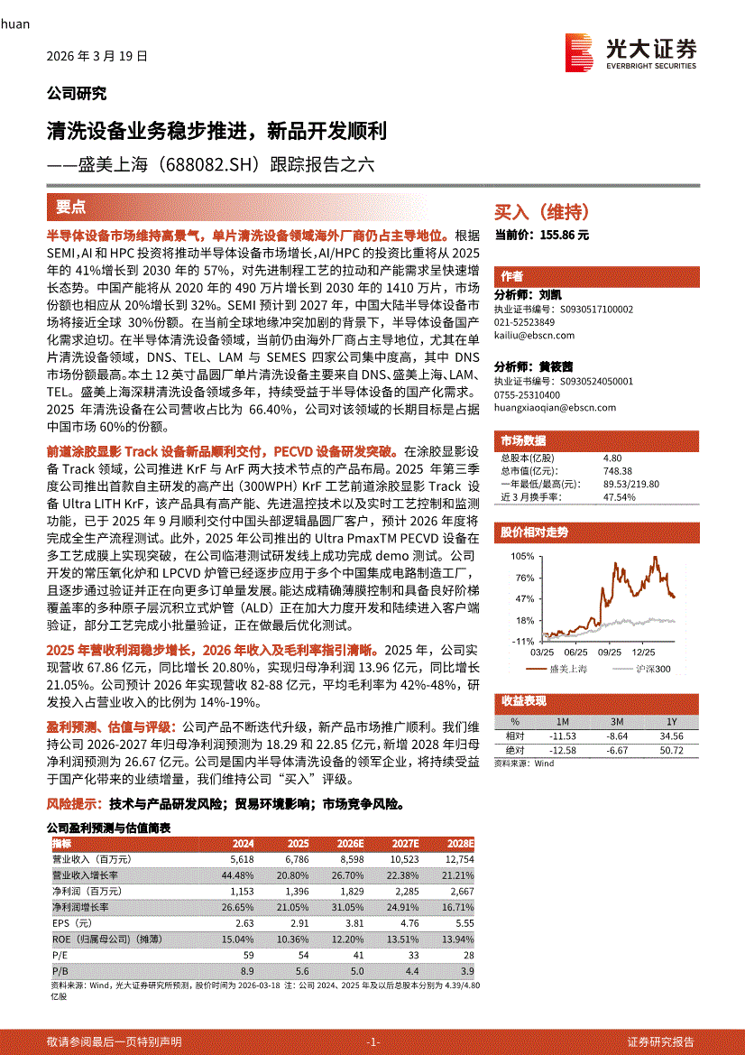 盛美上海:光大证券-盛美上海-688082-跟踪报告之六:清洗设备业务稳步推进,新品开发顺利-260319