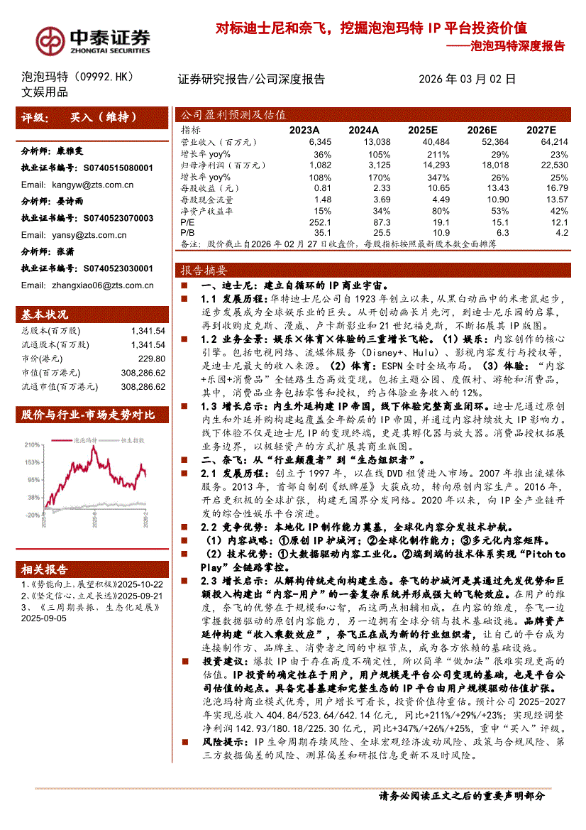 泡泡玛特:中泰证券-泡泡玛特-9992.HK-深度报告:对标迪士尼和奈飞,挖掘泡泡玛特IP平台投资价值-260302