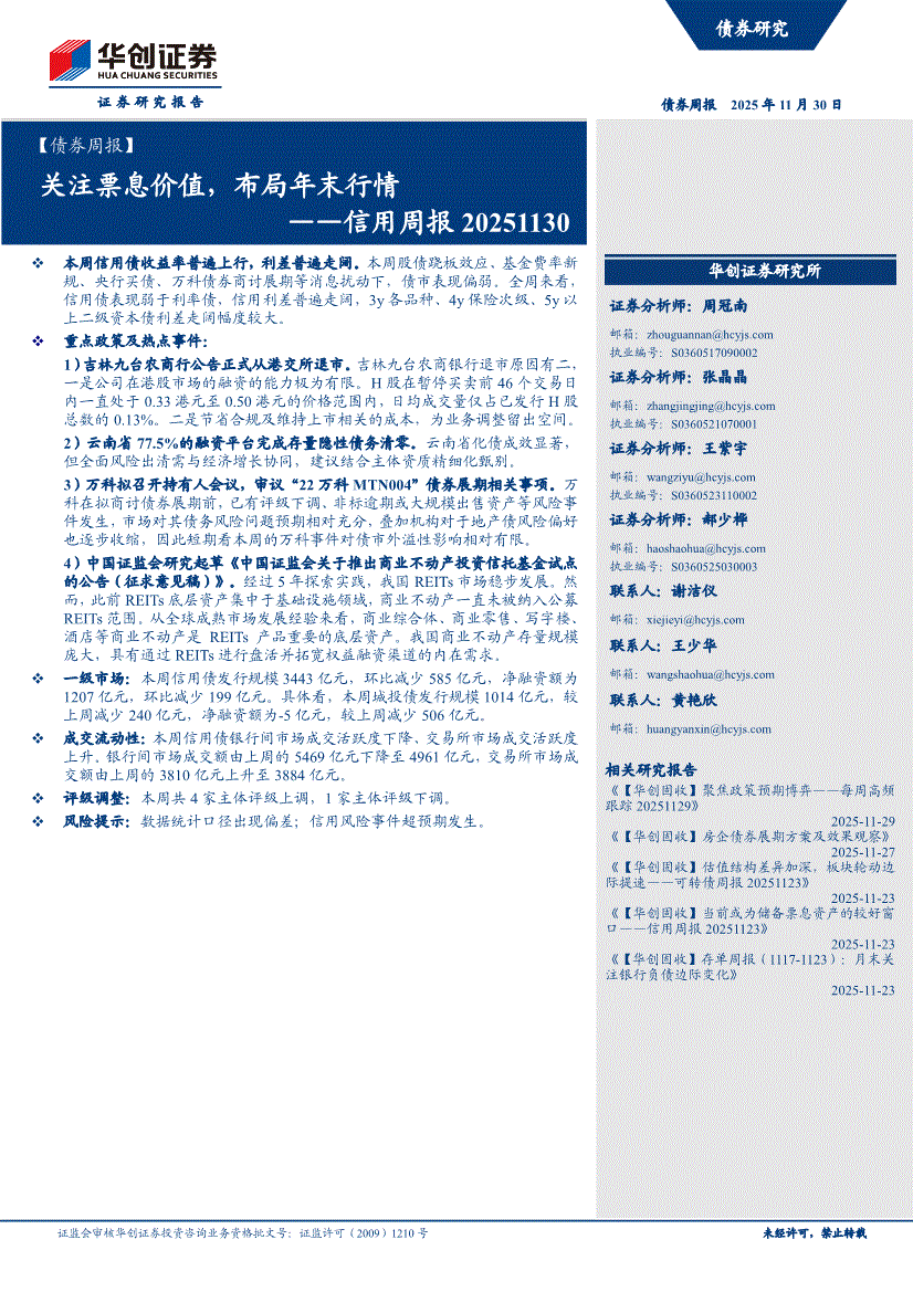 华创证券-信用周报:关注票息价值,布局年末行情-251130