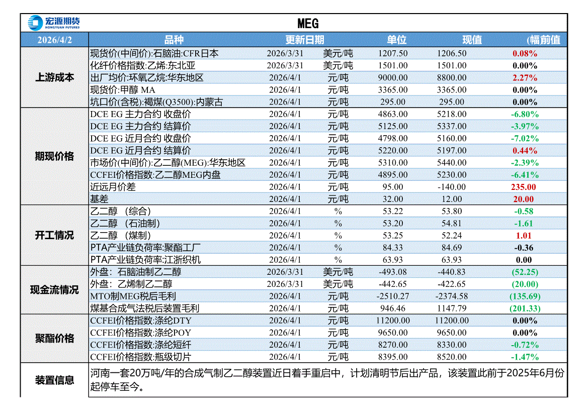 宏源期货-能源化工周报~MEG:成本支撑和进口缩量带来利好-260303