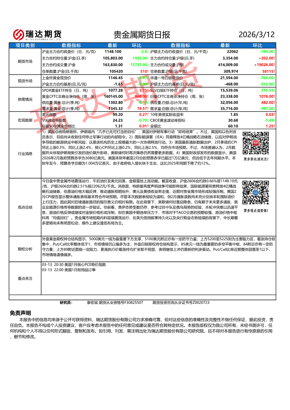 瑞达期货-贵金属期货日报-260312