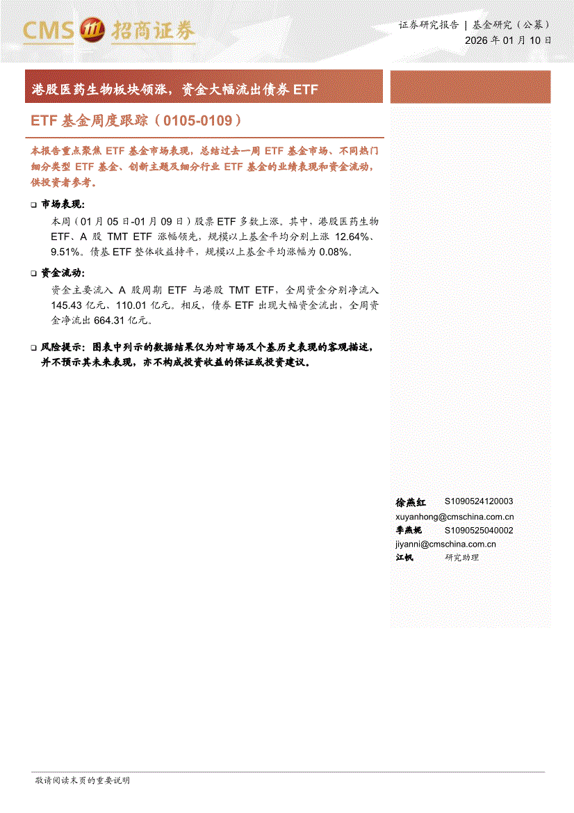 招商证券-ETF基金周度跟踪:港股医药生物板块领涨,资金大幅流出债券ETF-260110