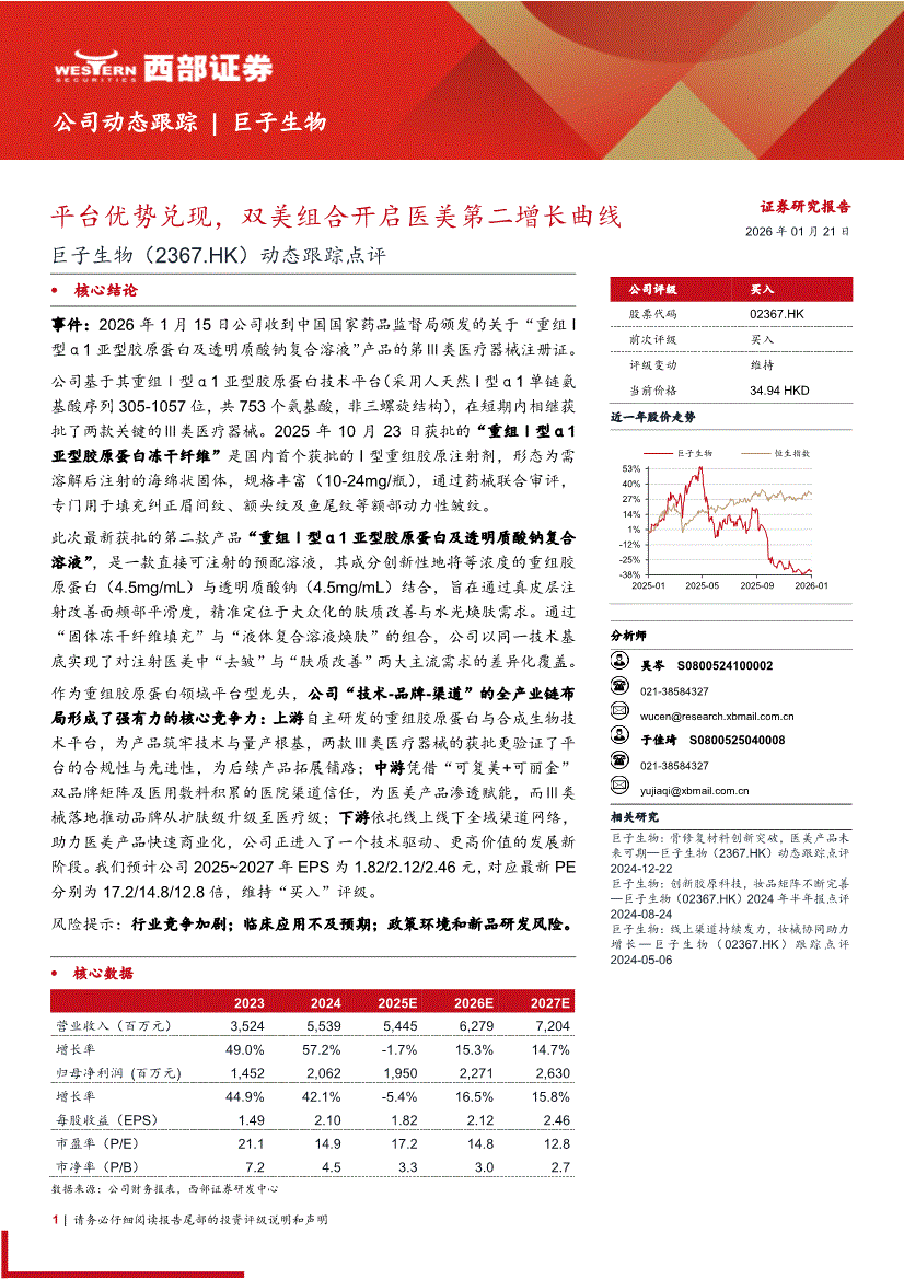 巨子生物:西部证券-巨子生物-2367.HK-动态跟踪点评:平台优势兑现,双美组合开启医美第二增长曲线-260121