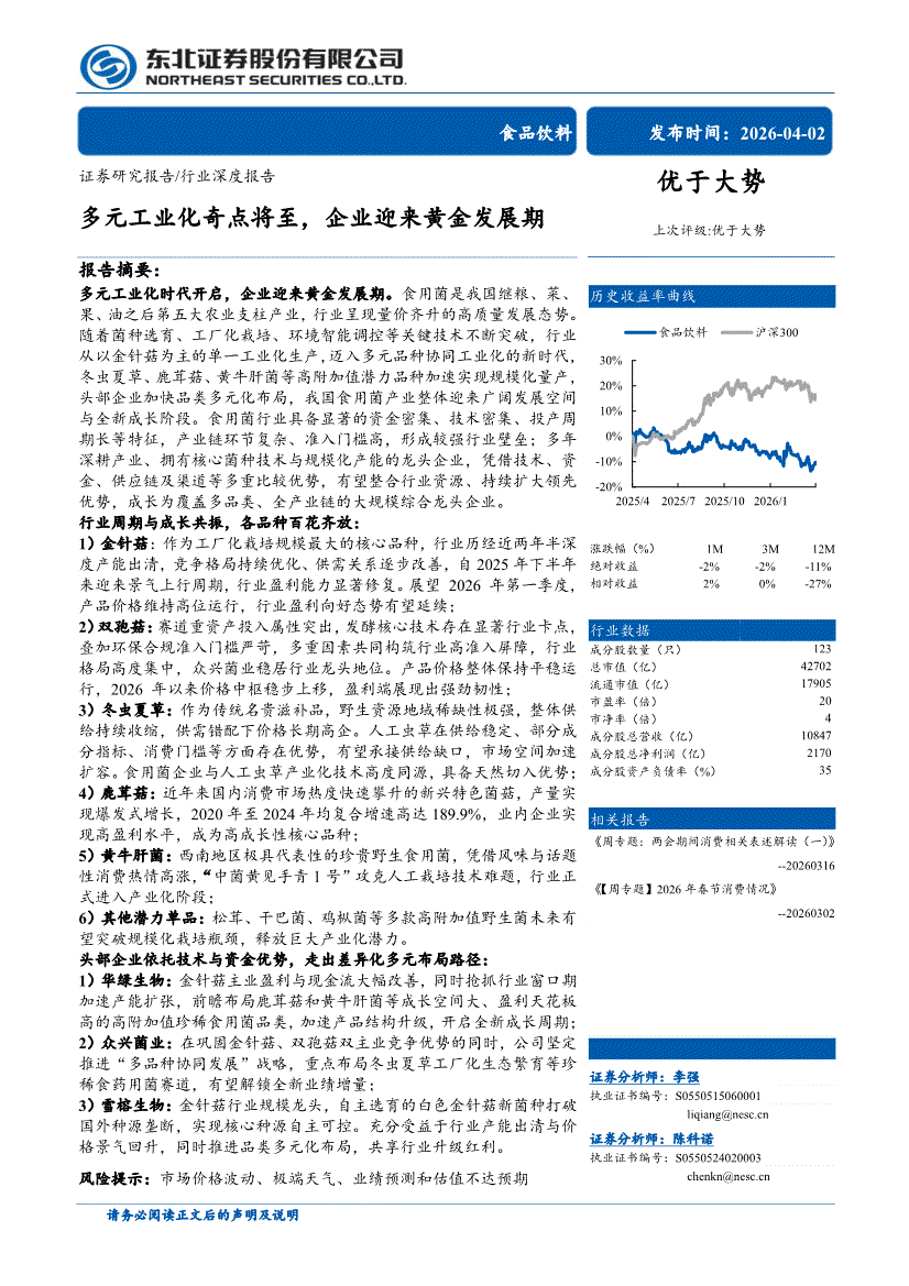 食品饮料行业:东北证券-食品饮料行业:多元工业化奇点将至,企业迎来黄金发展期-260402