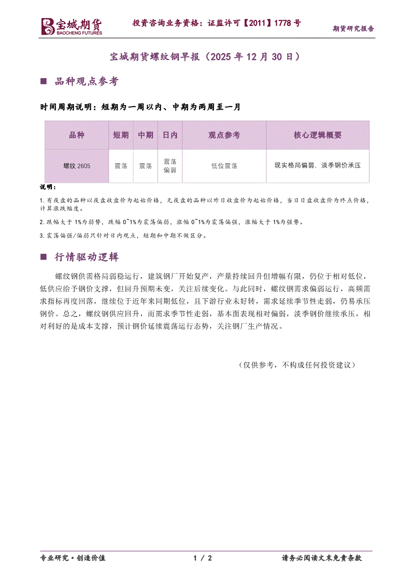 宝城期货-螺纹钢早报-251230