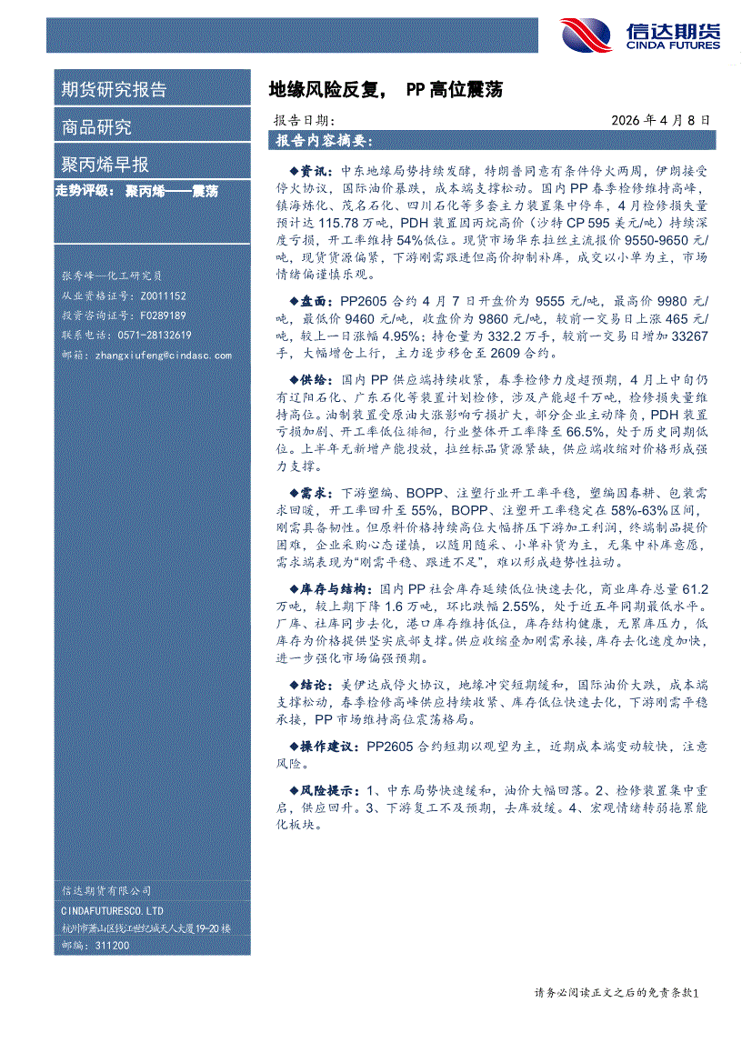 信达期货-聚丙烯早报:地缘风险反复,PP高位震荡-260408