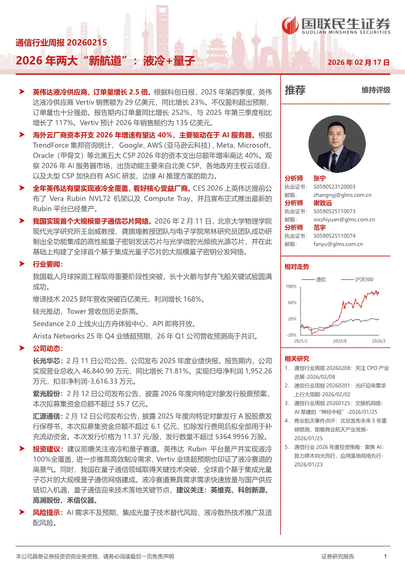 通信行业:国联民生证券-通信行业周报:2026年两大“新航道”,液冷+量子-260217