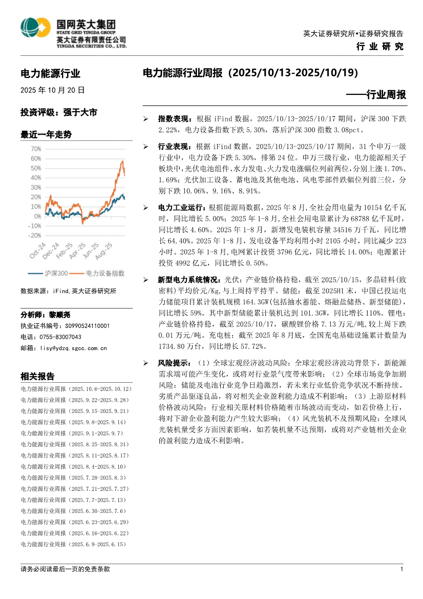 电力能源行业:英大证券-电力能源行业周报-251020