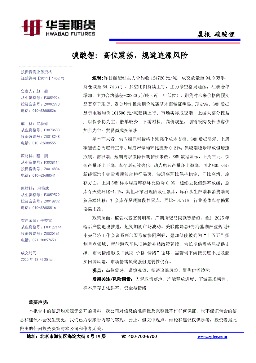 华宝期货-碳酸锂晨报:高位震荡,规避追涨风险-251225