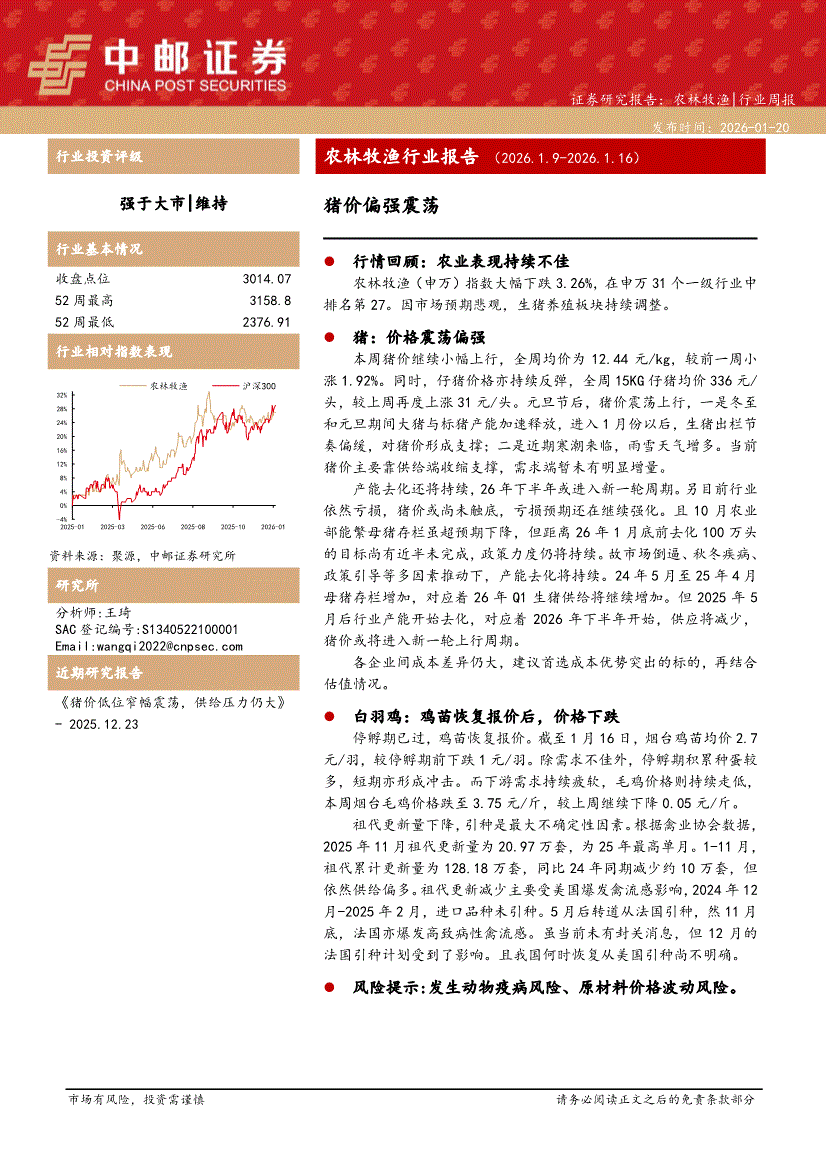 农林牧渔行业:中邮证券-农林牧渔行业周报:猪价偏强震荡-260120