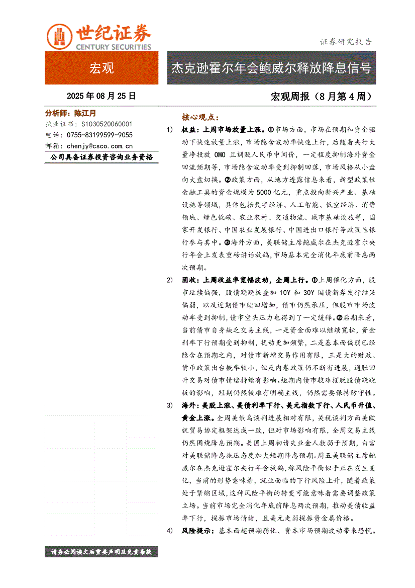 世纪证券-宏观周报(8月第4周):杰克逊霍尔年会鲍威尔释放降息信号-250825