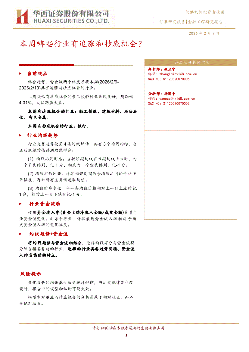 华西证券-本周哪些行业有追涨和抄底机会?-260207
