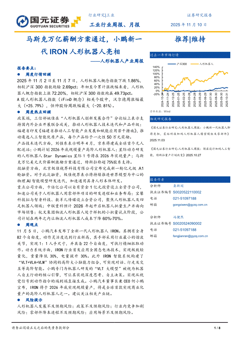人形机器人行业:国元证券-人形机器人行业产业周报:马斯克万亿薪酬方案通过,小鹏新一代IRON人形机器人亮相-251110