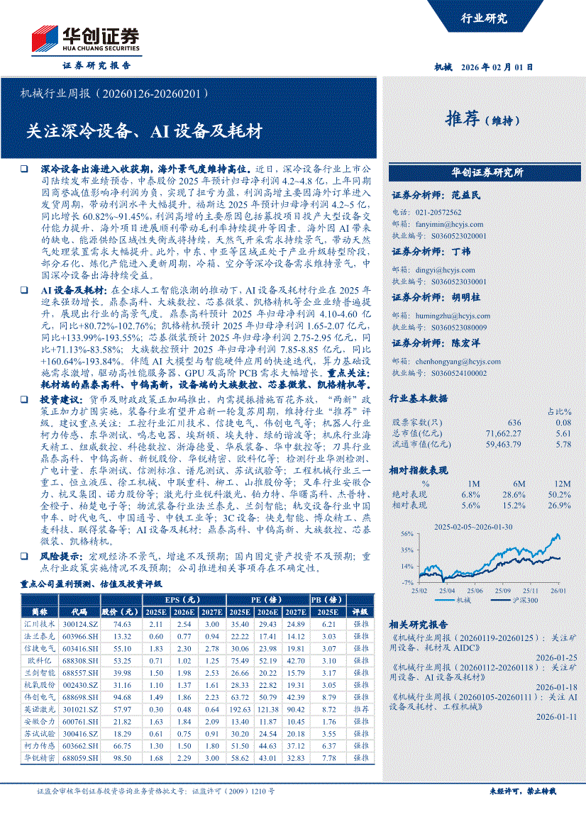 机械行业:华创证券-机械行业周报:关注深冷设备、AI设备及耗材-260201