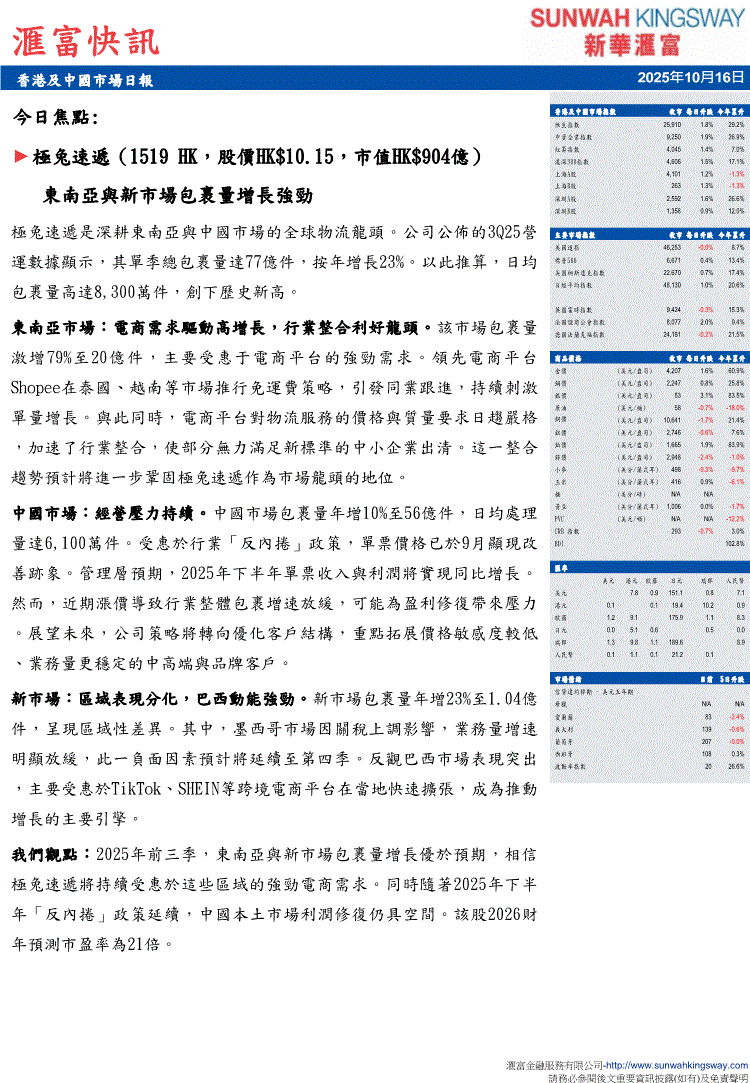 新华汇富-汇富快讯:香港及中国市场日报-251016