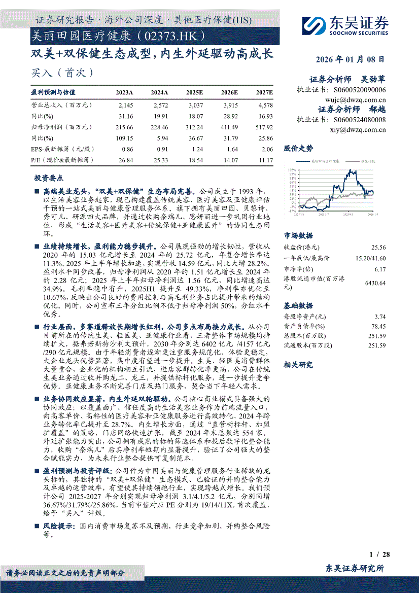 美丽田园医疗健康:东吴证券-美丽田园医疗健康-2373.HK-双美+双保健生态成型,内生外延驱动高成长-260108