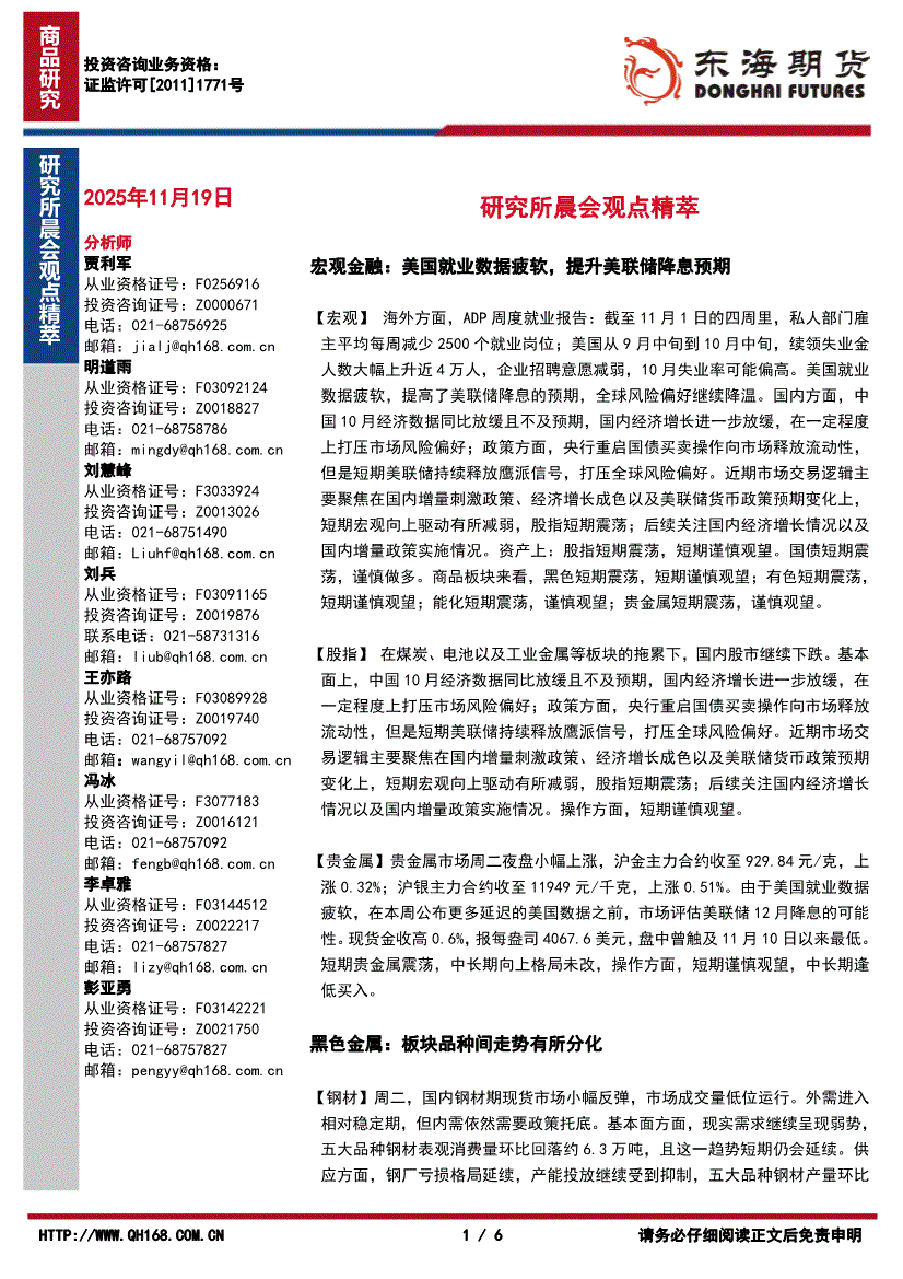 东海期货-研究所晨会观点精萃-251119
