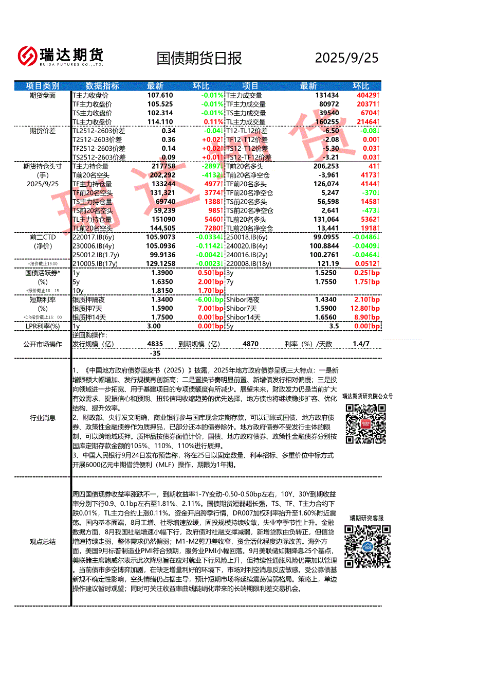 瑞达期货-国债期货周报:债市底部震荡,多头动能偏弱-251010