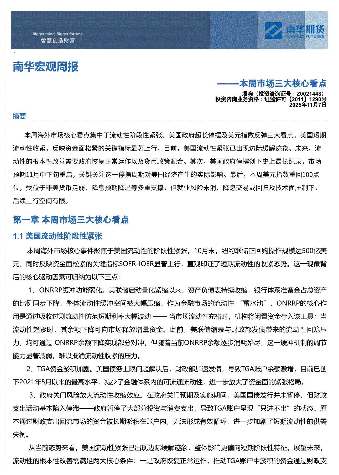 南华期货-宏观周报:本周市场三大核心看点-251107