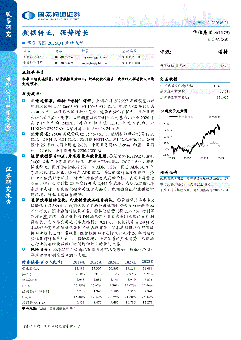 华住集团~S:国泰海通证券-华住集团~S-1179.HK-2025Q4业绩点评:数据转正,强势增长-260321