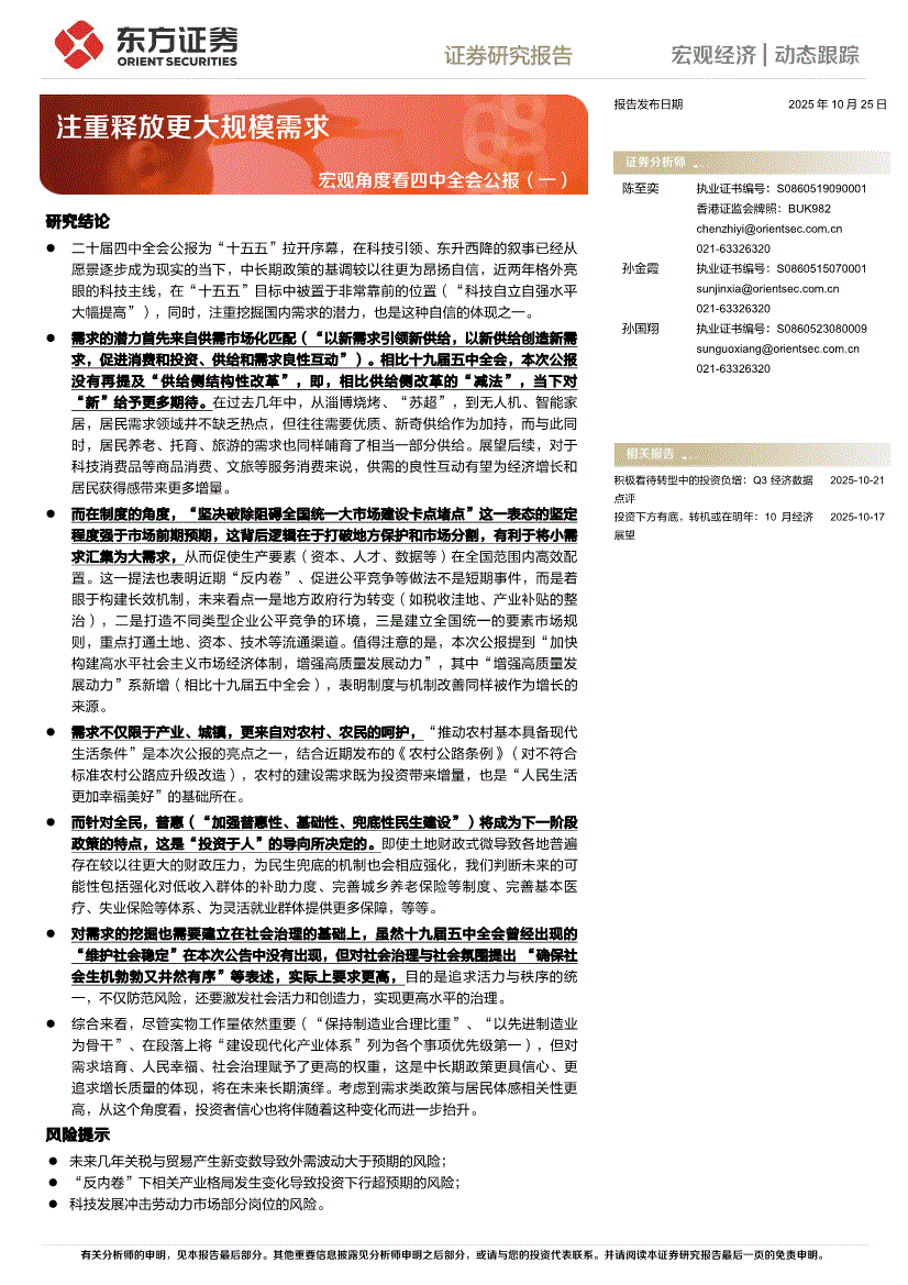 东方证券-宏观角度看四中全会公报(一):注重释放更大规模需求-251025