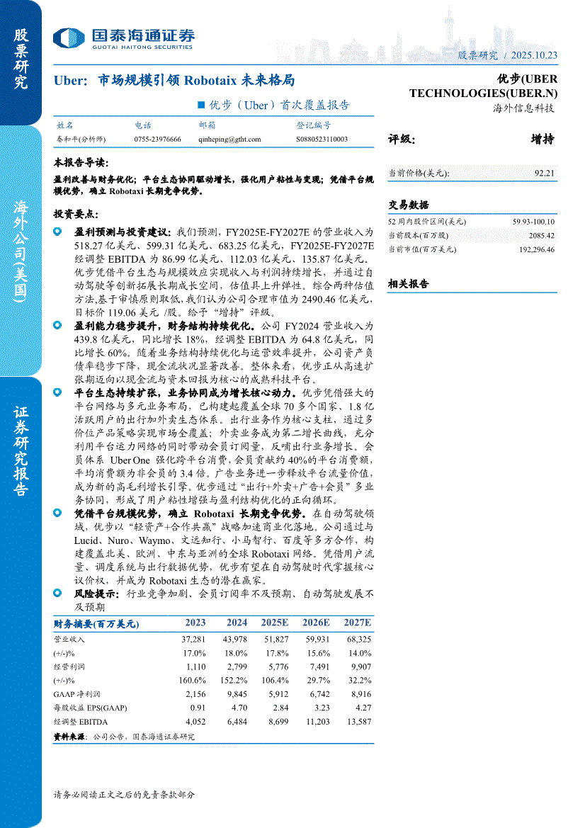优步:国泰海通证券-优步-UBER.US-首次覆盖报告:市场规模引领Robotaix未来格局-251023