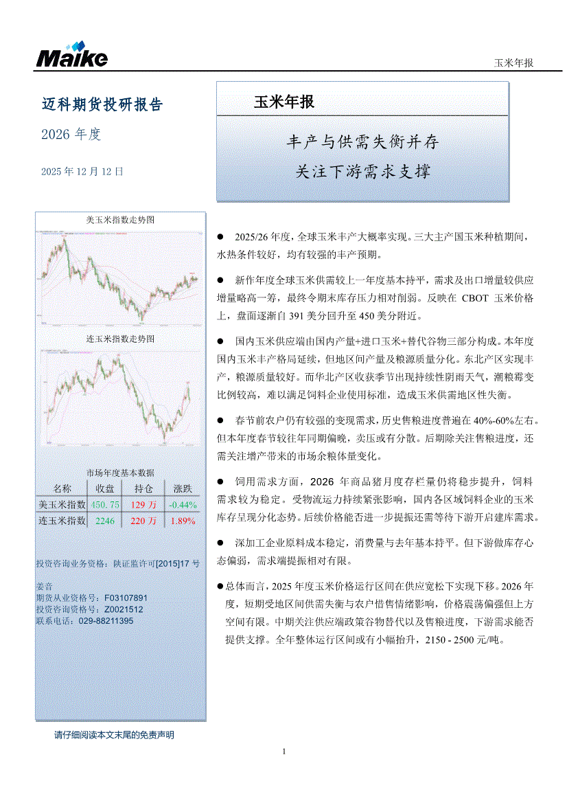 迈科期货-玉米年报:丰产与供需失衡并存,关注下游需求支撑-251212