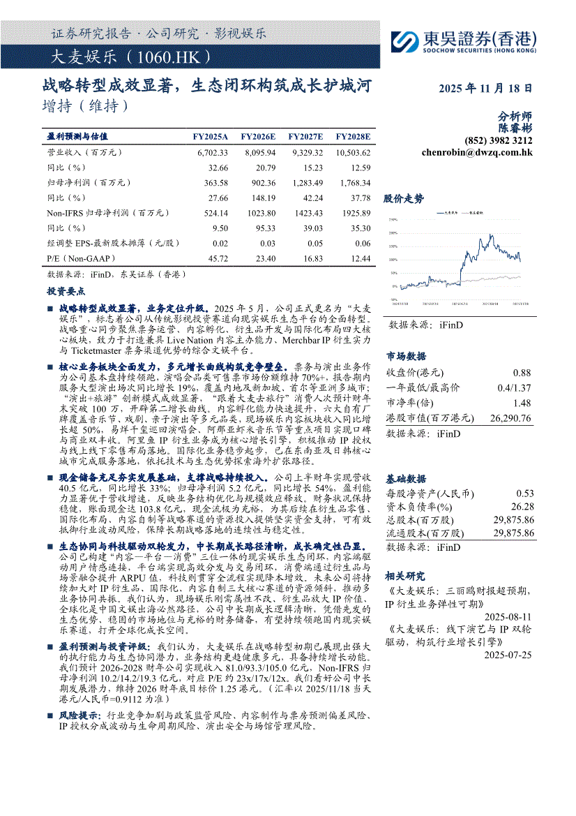 大麦娱乐:东吴证券(香港)-大麦娱乐-1060.HK-战略转型成效显著,生态闭环构筑成长护城河-251118