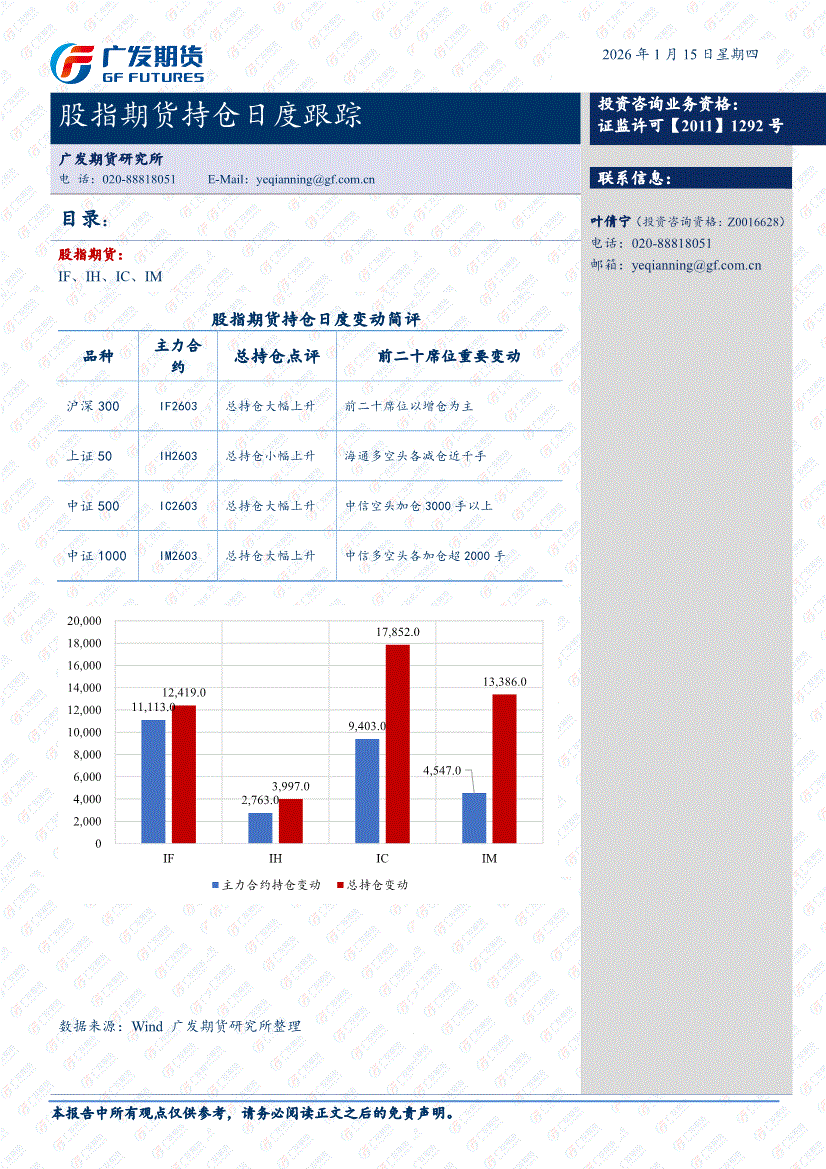 广发期货-股指期货持仓日度跟踪-260115