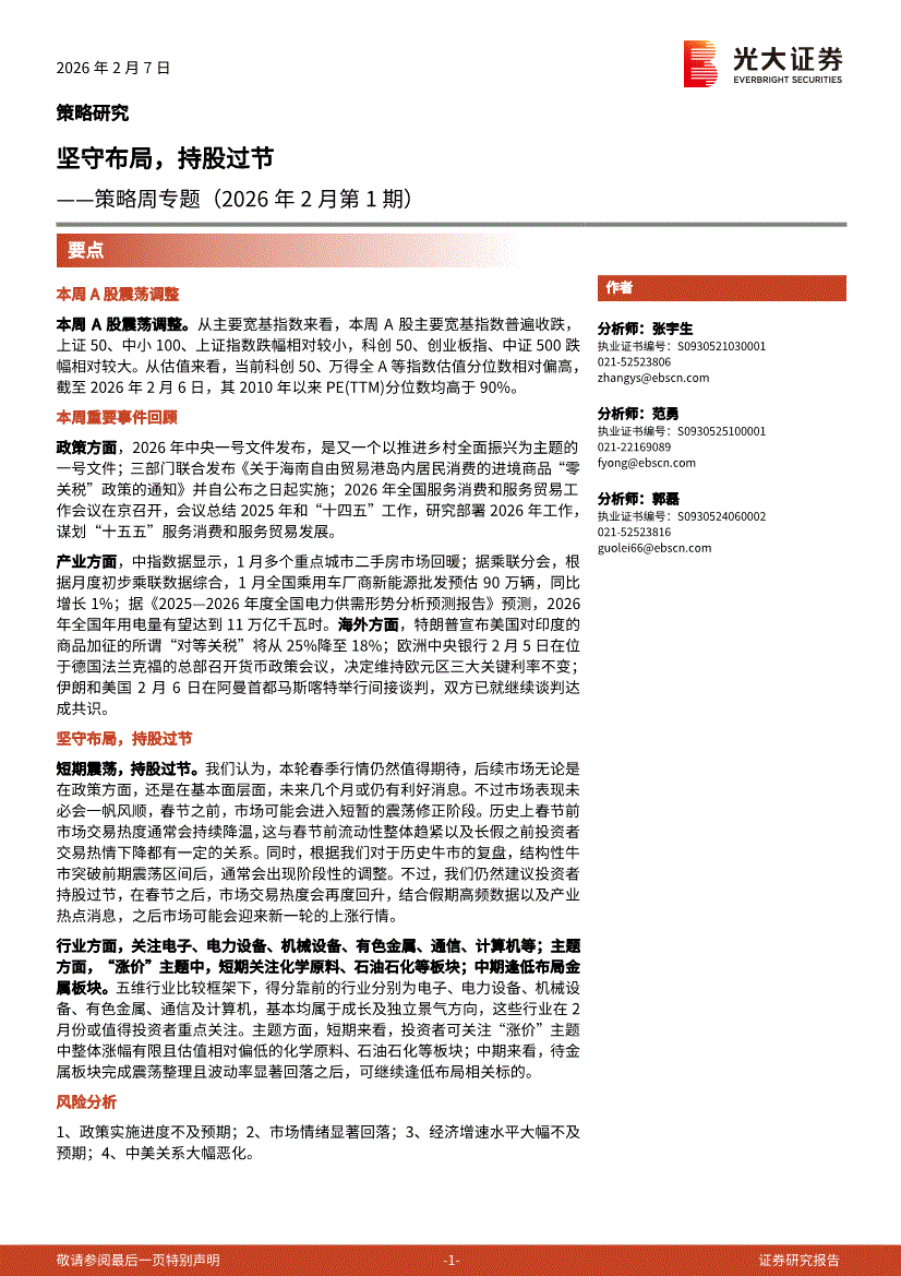 光大证券-策略周专题(2026年2月第1期):坚守布局,持股过节-260207